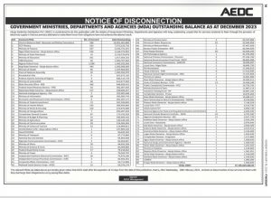 To address outstanding debts owed by various government Ministries, Departments, and Agencies (MDAs), Abuja Electricity Distribution PLC (AEDC) has warned sternly of impending disconnection if payment is not settled within 10 days.