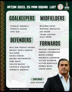 Coach Jose Peseiro unveiled his final 25-man squad on Friday, December 29, 2023, aiming to lead his team to glory in the tournament scheduled from January 13 to February 11, 2024.
