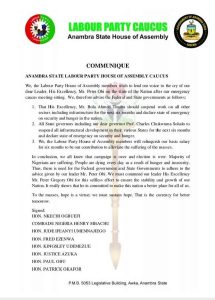 The Labour Party caucus, comprising prominent figures including Hon. Nkechi Ogbuefi, Comrade Nigeria Henry Mbachu, Hon. Jude Ifeanyi Umennajiego, Hon. Fred Ezenwa, Hon. Kingsley Udemezue, Hon. Justice Azuka, Hon. Paul Obu, and Hon. Patrick Okafor, issued a communiqué outlining their recommendations to both the Federal and State governments.