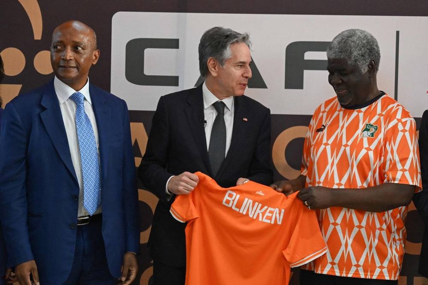 U.S. Secretary of State Antony Blinken landed in Ivory Coast on Monday. During the visit, Blinken visited the Stade Olympique Alassane Ouattara D’Ebimpé in Côte d’Ivoire for an AFCON match where he was presented with a personalized jersey bearing his surname, a gesture that highlighted the warm welcome he received from the Republic of Cote d’Ivoire.