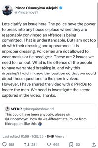 Reacting to the incident, ACP Adejobi defended the police’s power to enter premises without a warrant in cases where they suspect an ongoing crime. However, he criticised the officers’ conduct, saying: