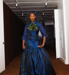 Singer Ayra Starr took a different route. Known for her trend-setting Gen Z flair, she surprised many with a toned-down look – a black tailored suit dress paired with a cane. Her minimalist style stood out in a sea of extravagant outfits.