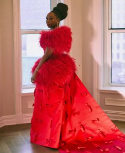 Chimamanda Adichie brought a literary kind of grace to the red carpet. She wore a flowing red gown by Prabal Gurung, looking regal and fierce. Her look echoes the eloquence she brings to every page she writes.