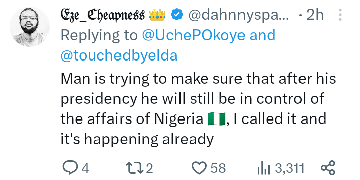 One netizen reacted to the relocation orders saying, “Man is trying to make sure that after his presidency he will still be in control of the affairs of Nigeria, I called it and it’s happening already”.