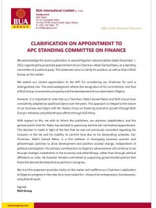 ‘‘However, it is important to note that our Chairman, Abdul Samad Rabiu, and BUA Group have consistently adopted an apolitical stance over the years. This approach is integral to the nature of our business and aligns with Mr Rabiu’s focus on fostering economic growth through BUA Group’s initiatives and philanthropic efforts through ASR Africa. With respect to this, we wish to inform the publishers, our partners, stakeholders, and the general public that Mr Rabiu has decided to graciously decline the nomination/appointment.’’