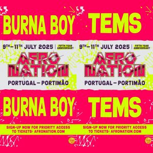 Afro Nation Portugal has revealed Burna Boy and Tems as headliners for its 2025 edition, celebrating the festival’s fifth anniversary. The event, scheduled from July 9 to July 11, promises a star-studded lineup with these two African music powerhouses leading the way.