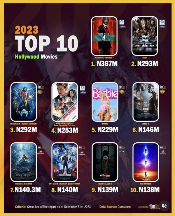 ByIkenna ChurchillMay 1, 2024FilmOne released its annual roundup of the highest-grossing films from the previous year, spotlighting both Nollywood and Hollywood hits. Topping the list for...