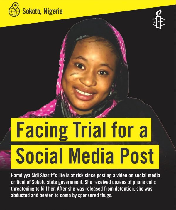 ByOluwasegun SanusiNovember 23, 2024Amnesty International has urged the Sokoto State government to immediately dismiss all charges against Hamdiyya Sidi Sharif, who is being prosecuted for criticising...