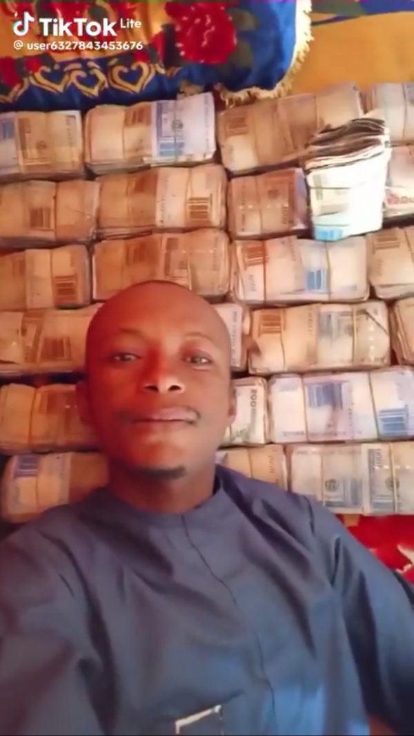 A bandit has been seen showing off money on Tiktok. The wraps of Naira notes flaunted by the man are money reportedly acquired...