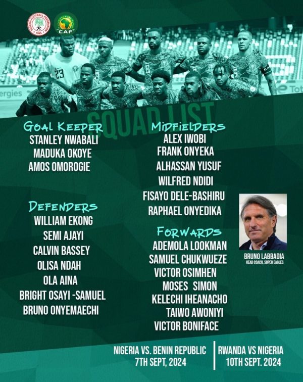 ByOluwasegun SanusiAugust 29, 2024Super Eagles Head Coach, Bruno Labbadia has unveiled his first 23-man squad list ahead of Nigeria’s upcoming Africa Cup of Nations (AFCON) qualifiers....