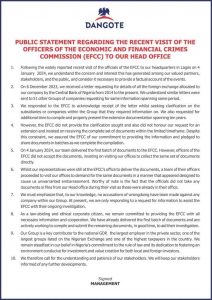 Dangote noted the fact that during the visit to the Company’s Head office, the EFCC officials did not take any documents or files as those had already been delivered to their office.