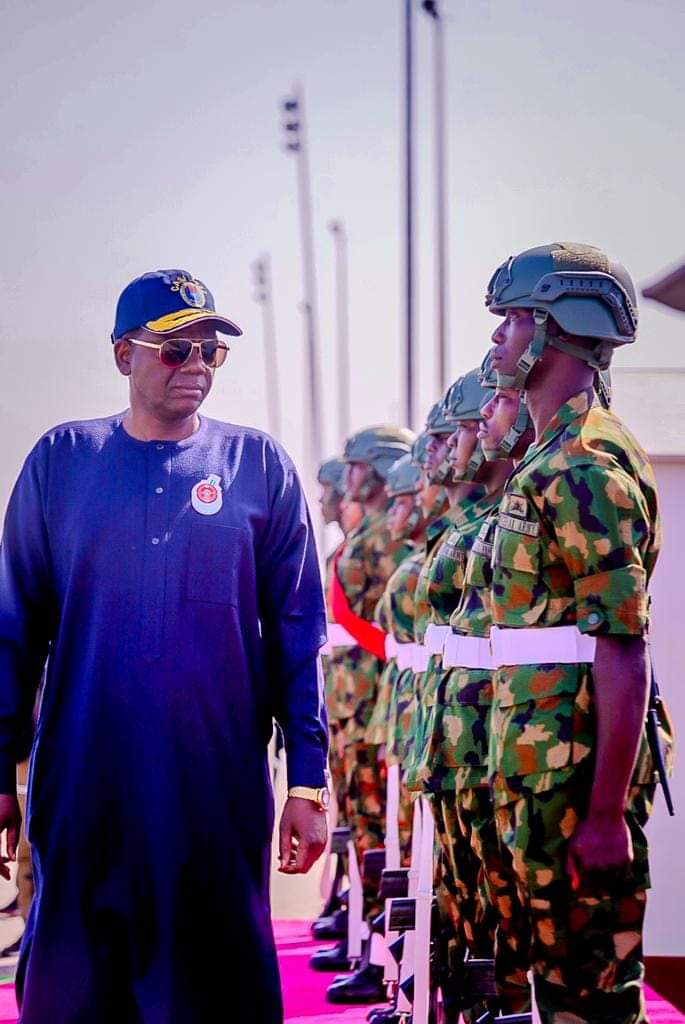 As first reported by ChannelsTv, They arrived at the Yakubu Gowon Airport Heipang aboard a Nigerian Air Force plane at 10:10 am, where they were received by military officials. Matawalle later stood to take the salute alongside the present service chiefs: Minister of Defence Staff, General Gabriel Musa; the Chief of Army Staff, Lieutenant General Taoreed Lagbaja; the Chief of Naval Staff, Vice Admiral Emmanuel Ogalla and the Chief of Air Staff, Air Marshall Hassan Abubakar.