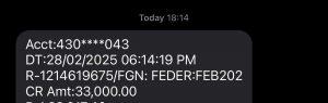 Multiple corps members confirmed receiving their February allowance on Friday night, only to discover that the amount remained unchanged at ₦33,000— half of the promised increment.