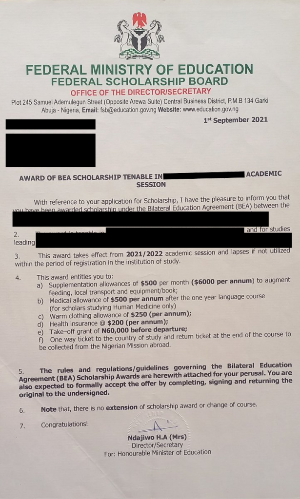 Nigerian Students in Russia, Algeria, Hungary, and Morocco, who are beneficiaries of the Bilateral Education Agreement scholarship program under the Federal Scholarship Board (FSB) are owed 10 months’ worth of their feeding and accommodation allowances.