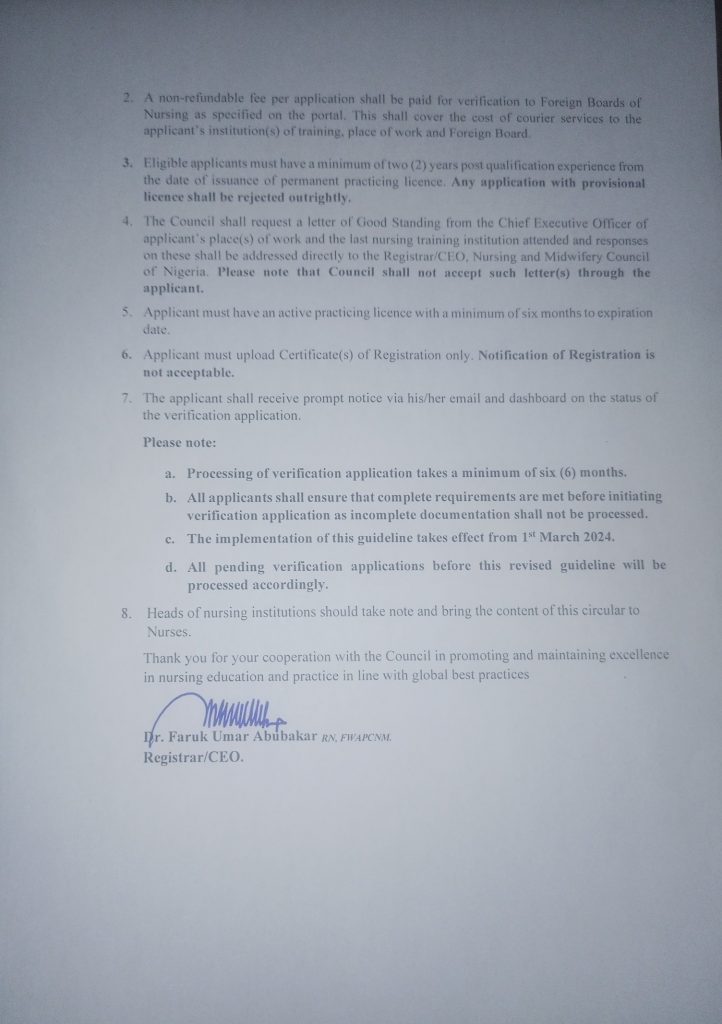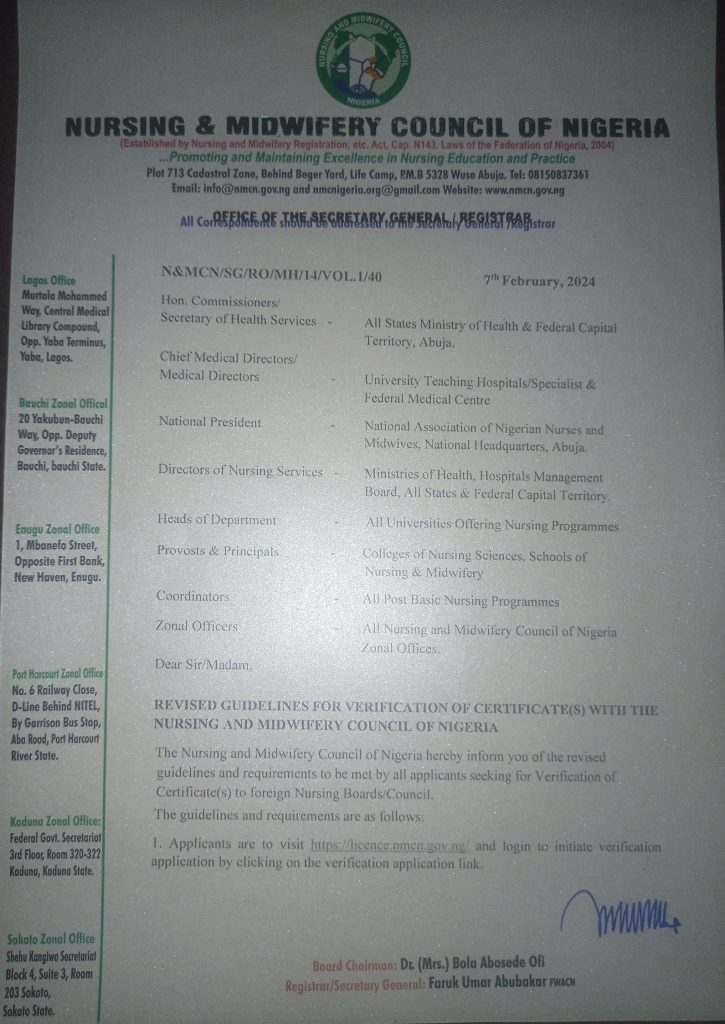 The NMCN on Wednesday, announced a new policy for verification fees for Nursing practitioners in Nigeria.