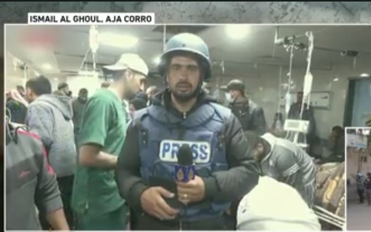 “We’re deeply alarmed and outraged by reports of the assault on an Al-Jazeera reporter, Ismail Al-Ghoul from Al-Shifa Hospital, and other journalists while doing their jobs reporting on the Israeli offensive on the hospital,” said CPJ Program Director Carlos Martinez de la Serna.
