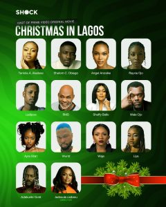 Shock Nigeria released the official cast list for Christmas In Lagos, which includes Teniola A. Aladese, Shalom C. Obiago, Rayxia Ojo, Shaffy Bello, and others with on-screen appearances from some of the biggest names in Afrobeats, including the 22-year-old vocal sensation Ayra Starr, and singer-songwriter Adekunle Gold.