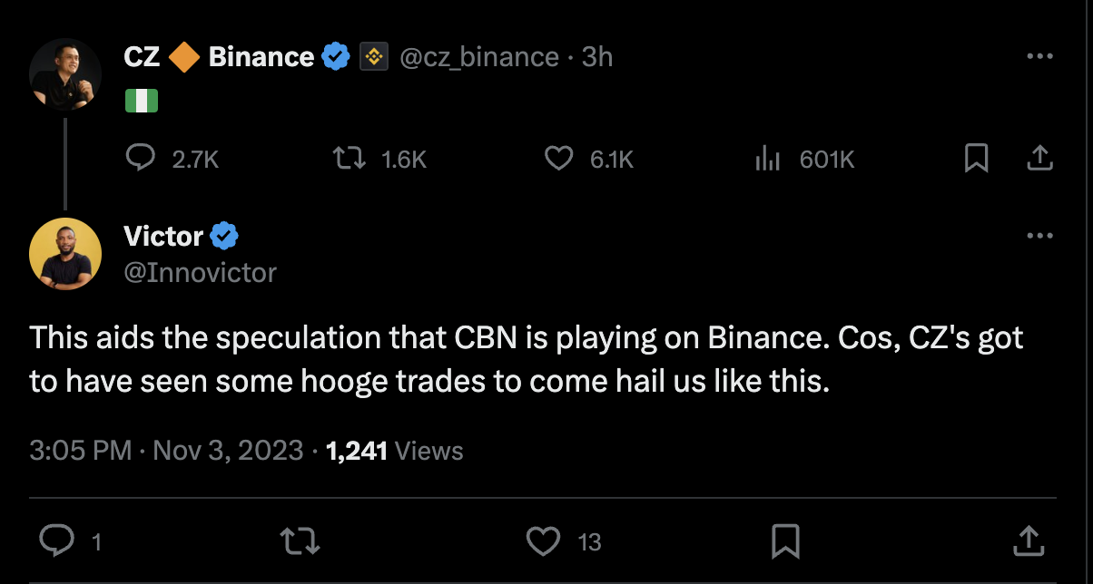 Changpeng Zhao, the co-founder of Binance, posted an emoji of the Nigeria flag on Twitter, adding an air of uncertainty to the ongoing situation.