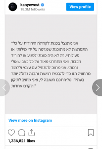 In a seemingly positive turn of events, however, Rapper Ye has taken to social media to express regret for any unintended harm caused by his words or actions. In an Instagram post he shared on Tuesday, he tendered an apology written in Hebrew.