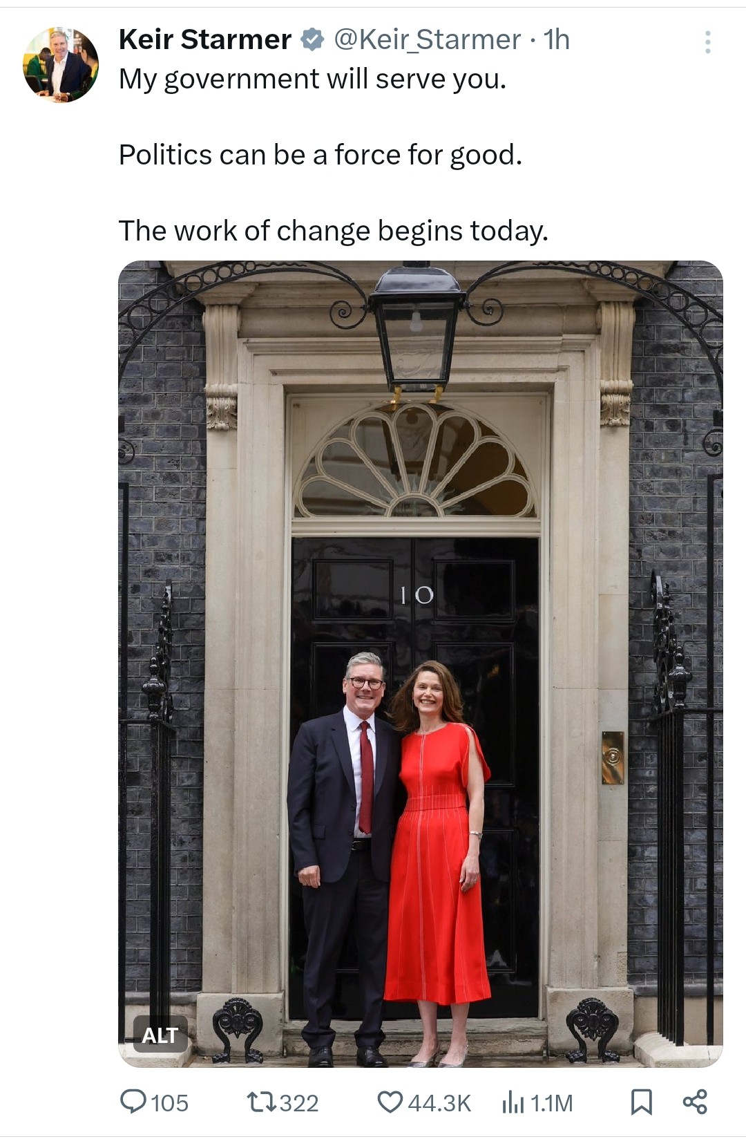 My government will make you believe again, Starmer proclaimed in front of No. 10 Downing Street (prime minister’s house) during his first address as UK’s prime minister.