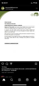 In response, the KWS Problem Animal Control team swiftly mobilised for a thorough search. However, despite a diligent overnight effort, the officers were unable to locate the lions.