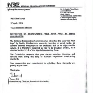 While “Tell Your Papa” has been spreading rapidly across social media, especially X (formerly Twitter), NBC’s directive warns media houses to avoid playing the track to “maintain responsible broadcasting standards.”