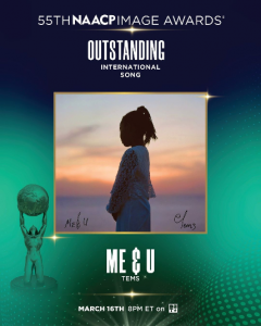 Nigerian music stars have again made their mark on the global stage, clinching prestigious accolades at the NAACP Image Awards. Among the winners announced during the virtual ceremony, Tems stood out, winning the Outstanding International Song award for her hit track “Me & U.” This marks her fourth NAACP Image Award win, adding to an impressive collection that includes Grammys, Oscars, and BET awards.
