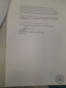 “You are also invited to a meeting on Monday, 19 February 2024, at 11:00 am in Room 141, House of Representatives New Building,” the directive said.