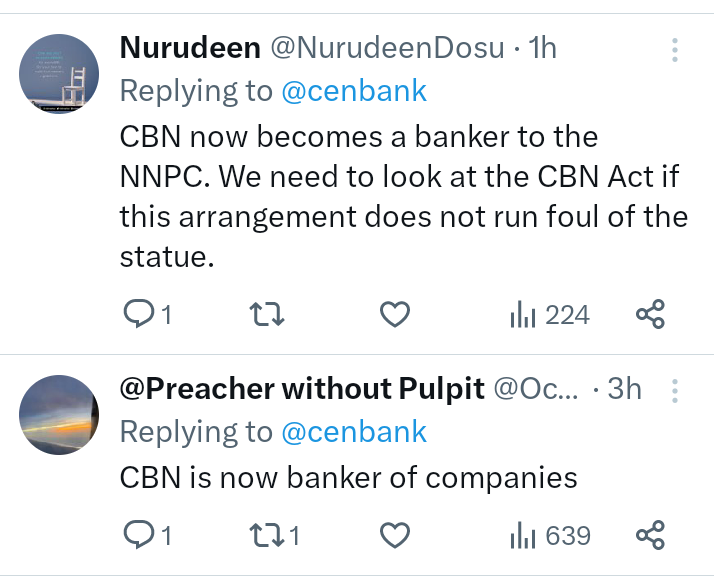 “According to what is publicly available, the President has issued a directive that henceforth, the NNPCL would submit receipts for crude oil sales to CBN for vetting and documentation.