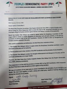 The decision was made during a meeting held on Friday to review the disciplinary committee’s report on the allegations against Melaye. It was signed by Ward Chairman Abayomi Osamika and Secretary Yodson Dayo.