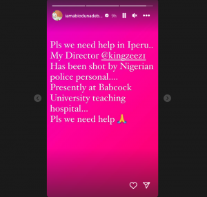 It was captioned, “Please we need help in Iperu. My director, Azeez Ijaduade, @kingzeez1, was shot by a Nigeria Police personnel.