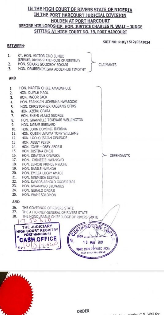 Amidst the political crisis in the State, Hon. Justice Charles N. Wali ordered that an interim injunction be granted restraining the 1st to 25th Defendants from parading and holding themselves out as members of the Rivers State House of Assembly.