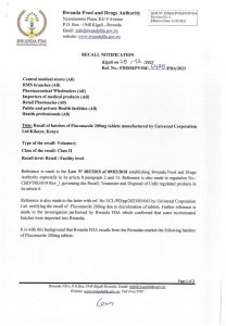 The Rwanda Food and Drugs Authority (RFDA) issued a recall notice for all batches of 200 mg Fluconazole tablets manufactured by the Kenyan company Universal Corporation.