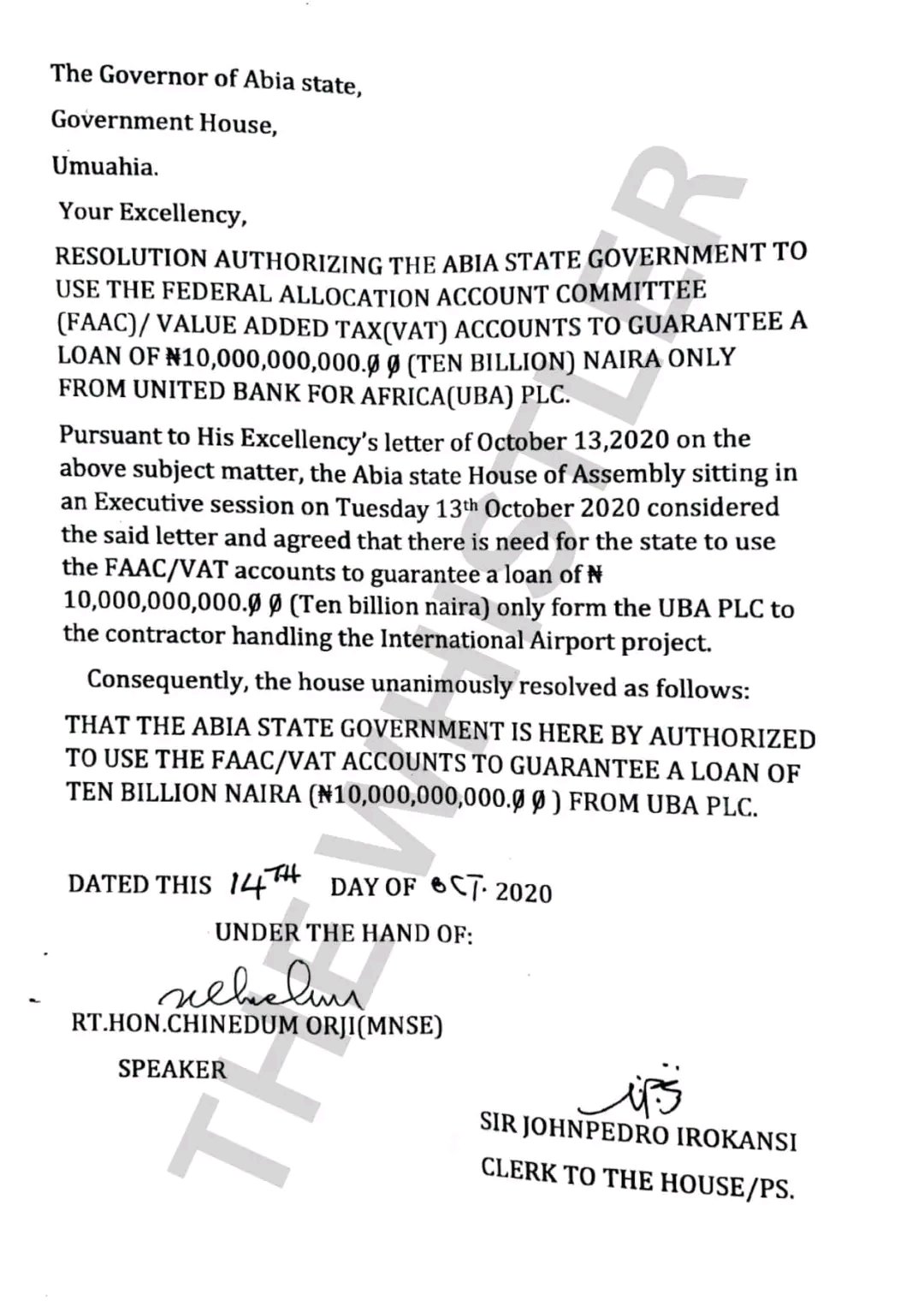 According to investigations, UBA was said to have disbursed the ₦10bn term loan to the contractor on September 25, 2020, which was before the October 8, 2020 date that Abia State Government sent the ISPO to UBA”, the WHISTLER reports.